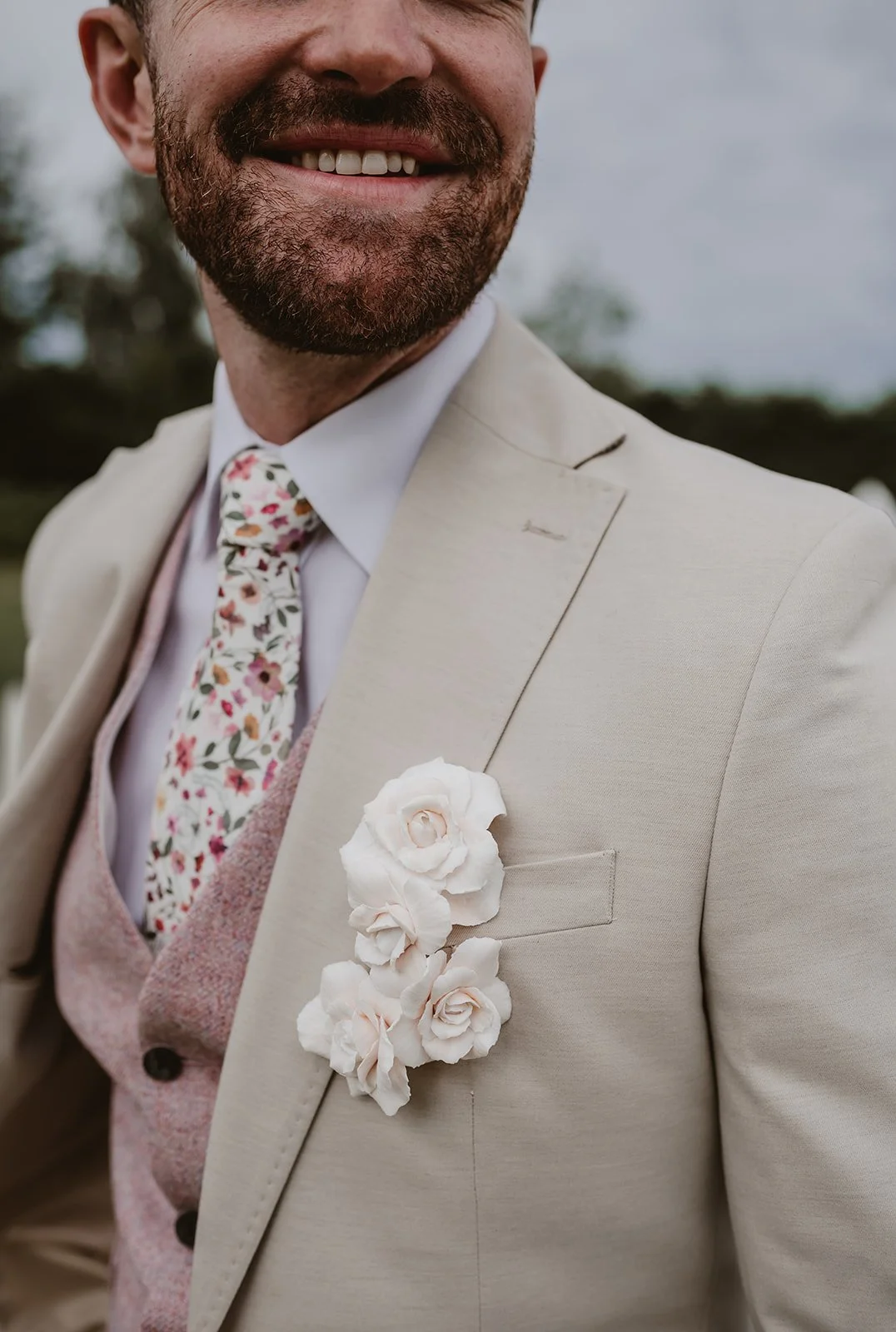 Boutonnieres Pale Peach Rose Boutonniere Lapel Pin – Handcrafted Clay Floral Buttonhole £98.00 Single Orchid Boutonniere in white £68.00 Single Cherry Blossom Boutonniere in dusty pink £68.00 Cherry Blossom Boutonniere in dusty pink £120.00 Sold out