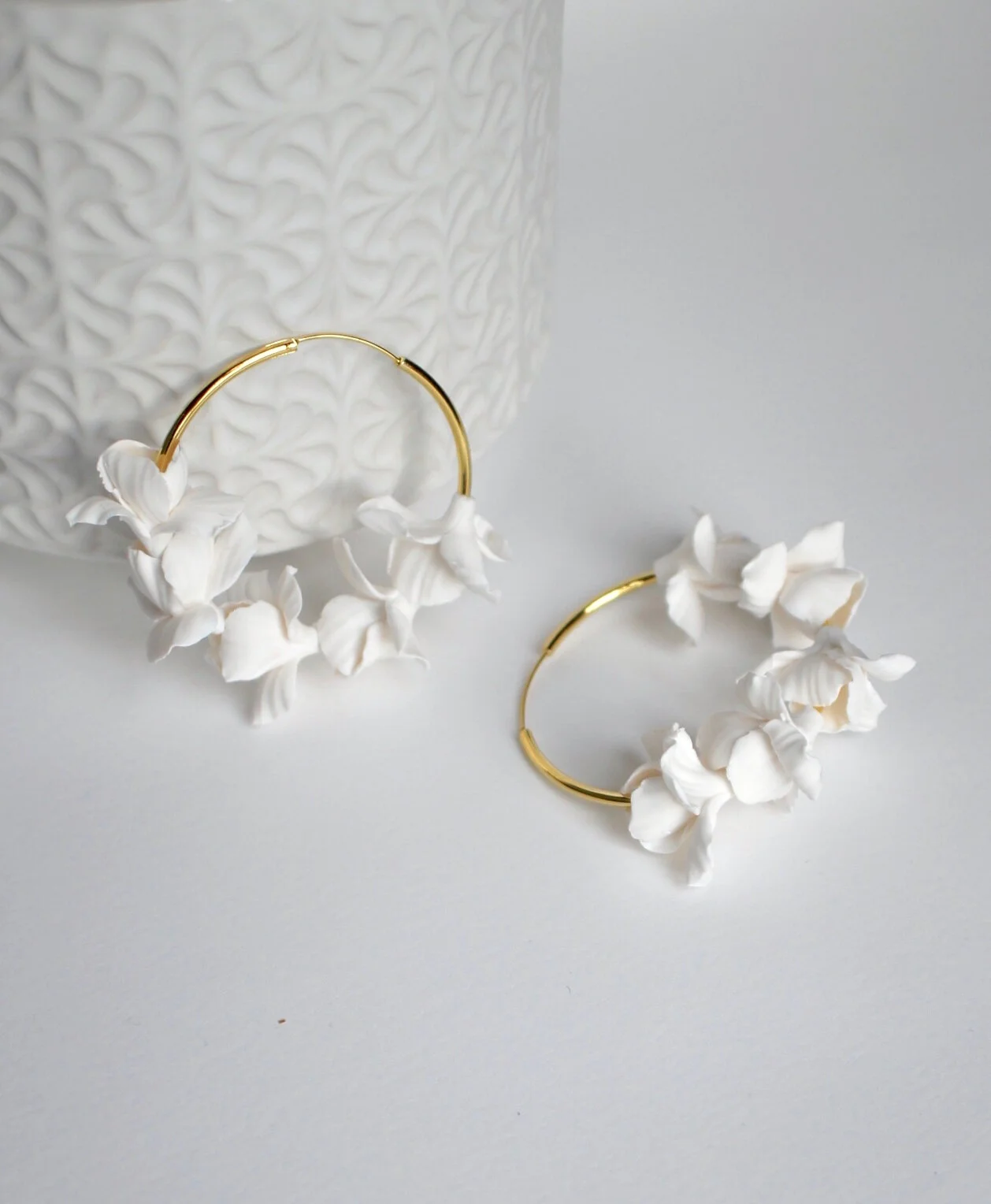 Delicate clay florals in soft whites or neutral tones
